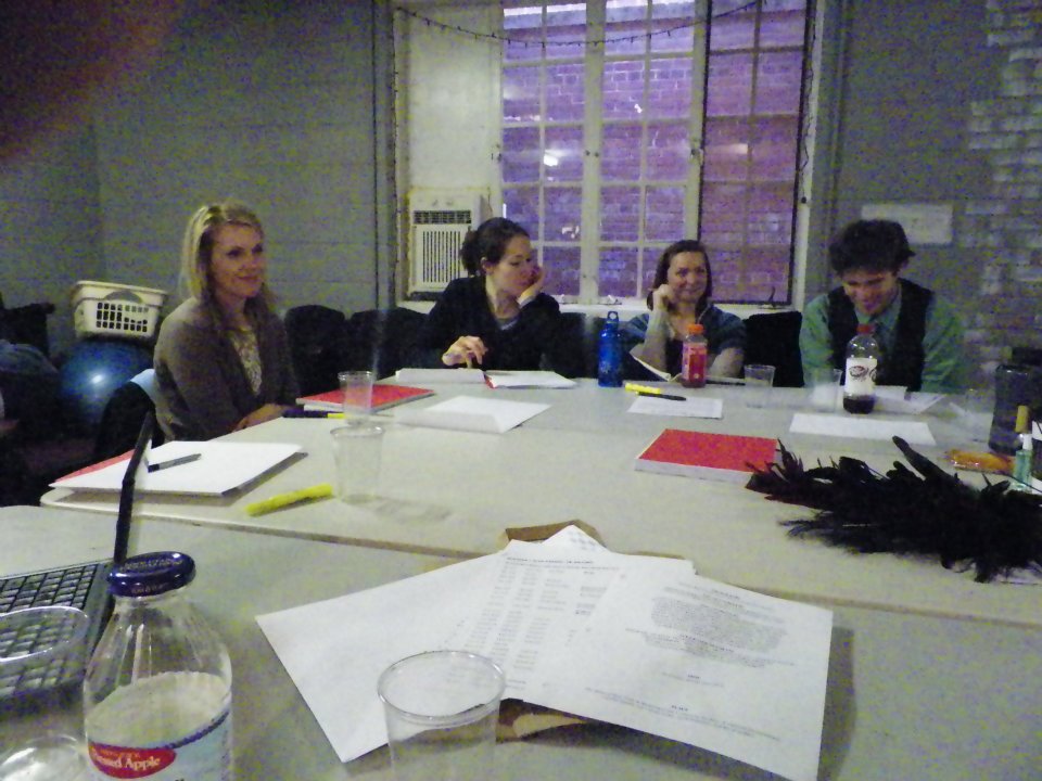 Rehearsals are underway for the world premiere of Fengar Gael’s The Gallerist. Rehearsing in the church basement space of the National Conservatory for Dramatic Arts, we feel right at home. We have a long tradition of making magic in rough spaces and this beautiful rustic space is the perfect place to explore Gael’s play about animal possessions and the dark underbelly of London’s high society.