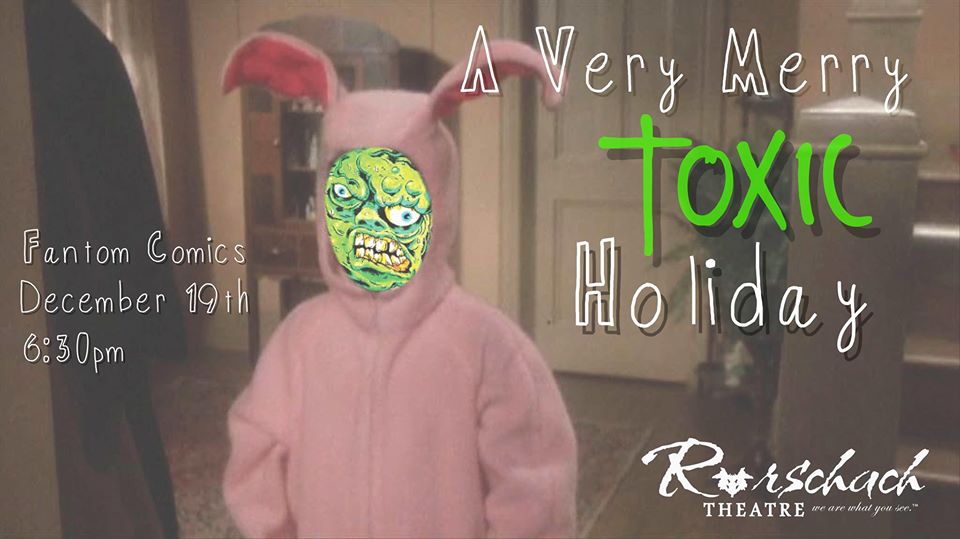 Join Rorschach Theatre and Fantom Comics as we come together to celebrate the holidays with our dear friend Toxie. Invite your friends to this free screening of THE TOXIC AVENGER (1984). Rorschach will bring the movie snacks, Fantom Comics will bring the atmosphere, you just have to bring yourself!