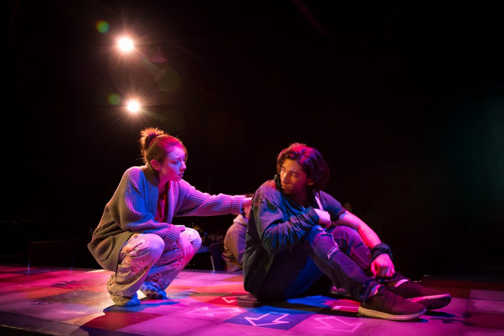 410 [Gone] is set primarily in the Chinese Land of the Dead which, as described by playwright Frances Ya-Chu Cowhig, “resembles a disco, arcade or pachinko parlor.”  The Goddess of Mercy and her companion the Monkey King live, work, bicker and indulge their vices as they transmigrate souls from the land of the dead via the video game Dance Dance Revolution.